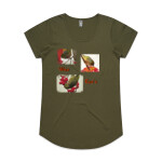 Self-fabric binding on neck, side seamed, double needle hems, preshrunk to minimise shrinkage